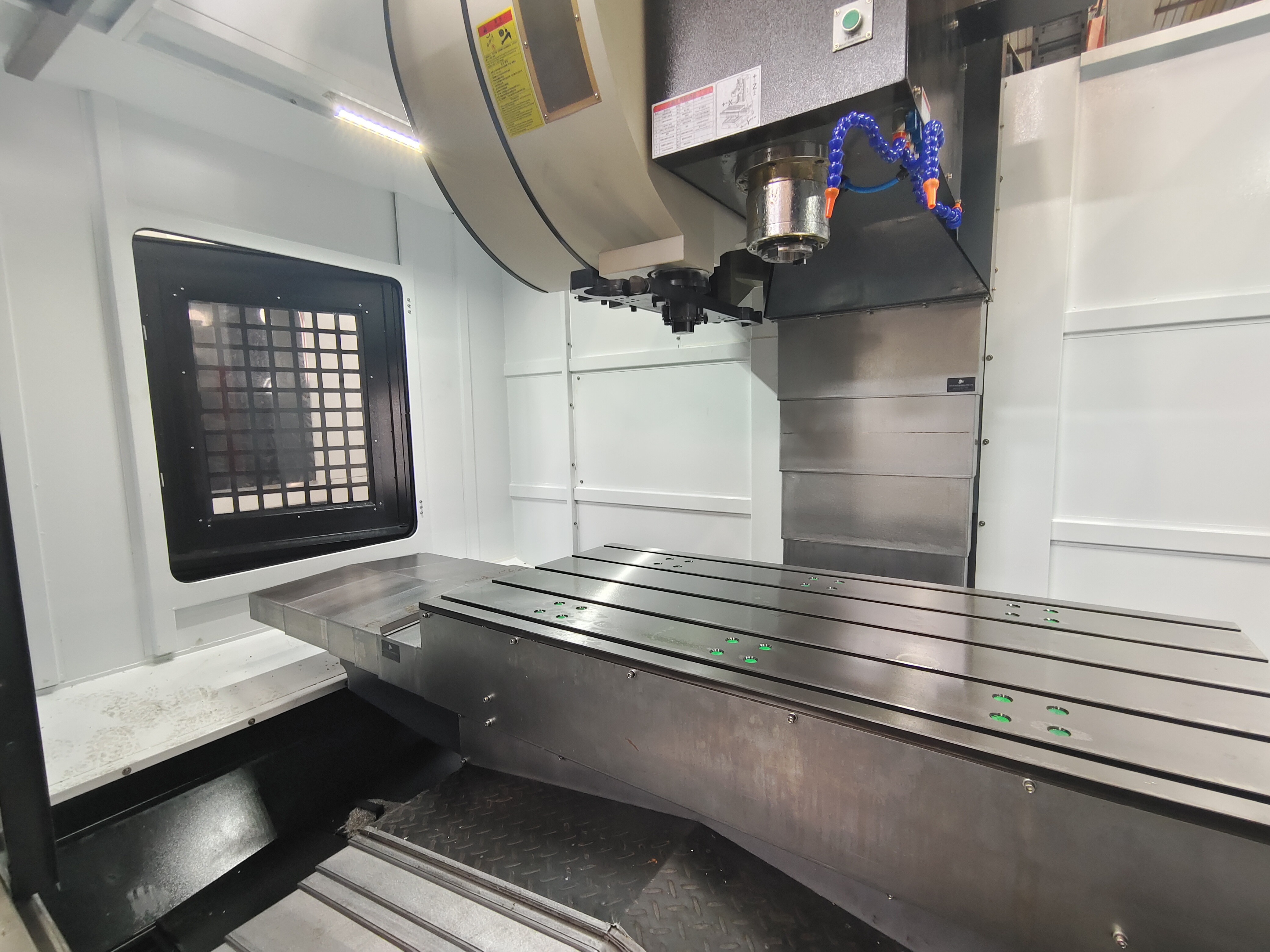主軸箱:采用高速主軸單元,主軸錐孔BT50規(guī)格,具備中心吹氣功能。